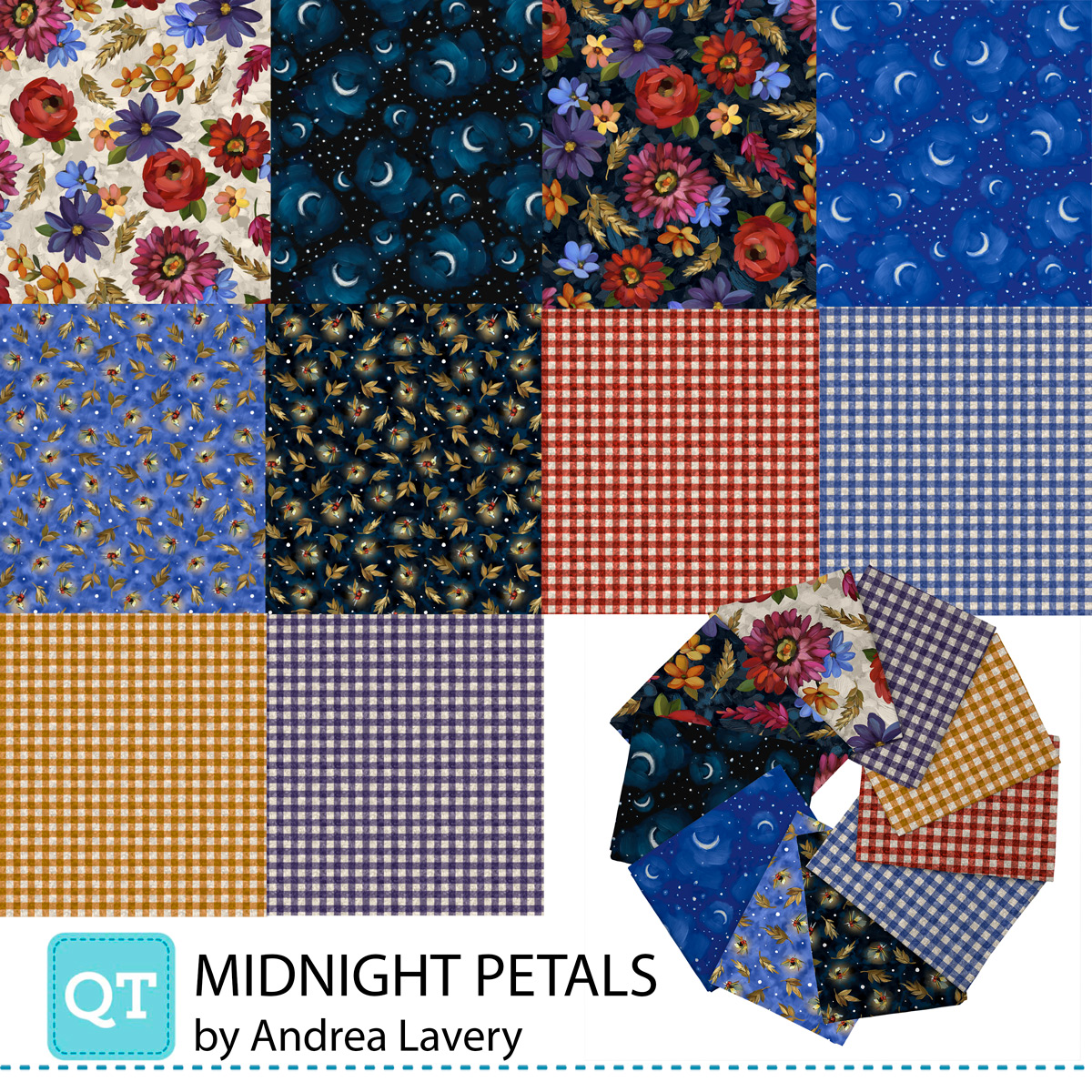 Andrea Lavery’s captivating textural paintings come to life on fabric in this enchanting collection. Ravishing shades of cardinal, fuchsia, periwinkle, plum, amber are beautifully balanced with deep navy and soft taupe tones. A stunning 24” panel, picture patch panel, and striking border stripe pair with an array of coordinates, offering endless creative possibilities. A canvas apron project panel adds extra creative variety. ©Andrea Lavery