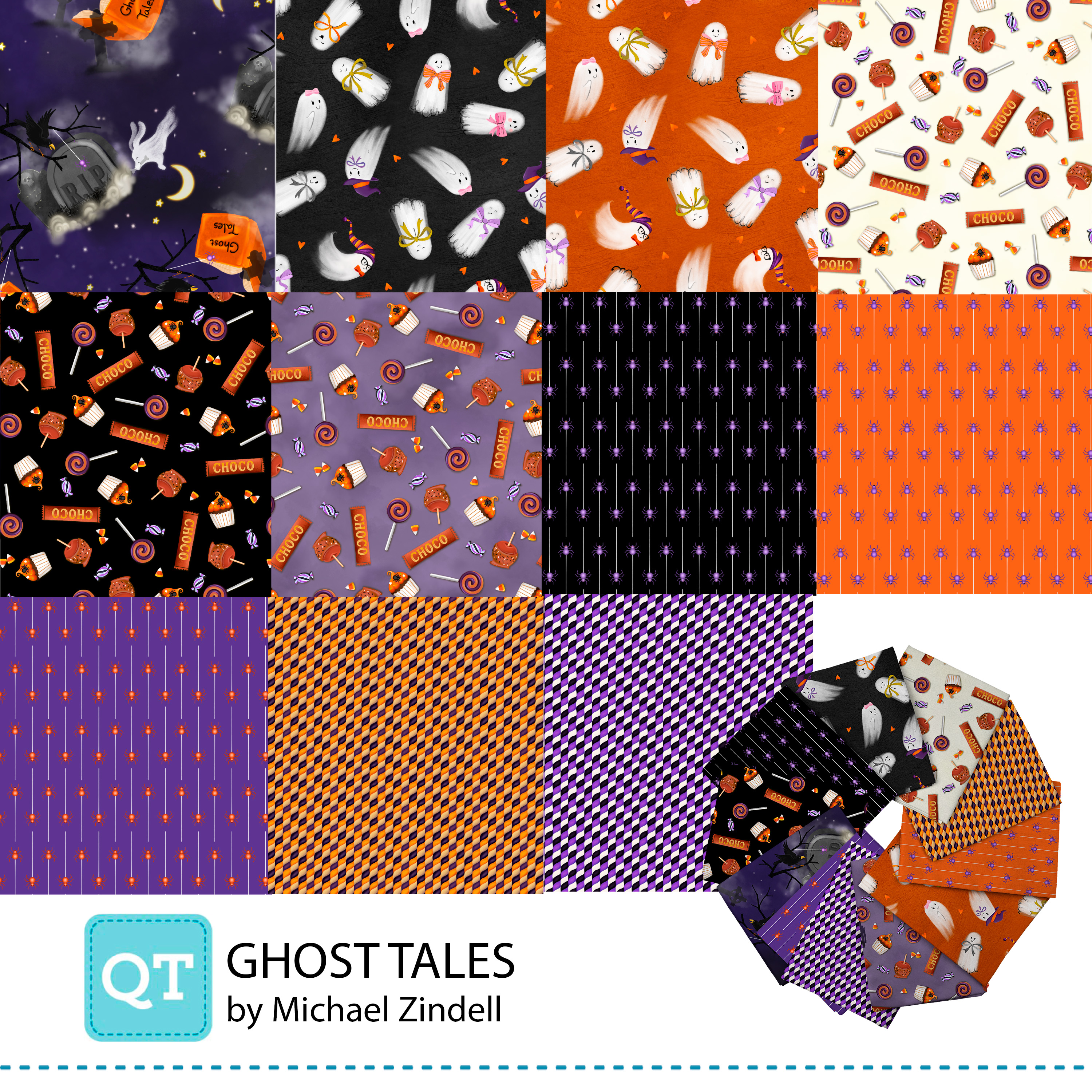Hey Boo! Fang in there! Enjoy a few ghostly tales designed to charm the Halloween spirit and earn you extra treats! These friendly ghosts bring fun and fantasy to your next project. With a main panel, patch panel, border stripe, and project panel, this group offers plenty of boo-tiful options for fang-tastic projects. ©Michael Zindell