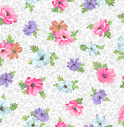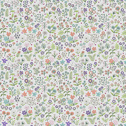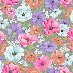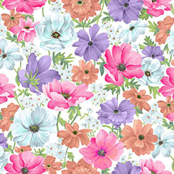 Delicate spring blossoms and a serene pastel palette is the perfect choice for fresh and charming projects. Floral designs mix and match seamlessly with a unique fan design, a patchwork, and jacquard coordinate. Project possibilities abound with options for Spring quilts, apparel, home décor accents, and tabletop. Collection includes an easy sew girls jumper panel offered in two sweet color combos. Did someone say twinning? Look for select skus printed on canvas.