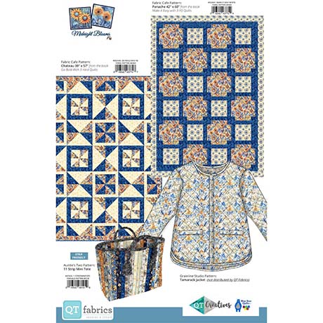 Exquisite flowers in dramatic colors are the focus of this collection. On trend navy, gray, coral and tangerine colors paired with cerulean blue and cream bring striking sophistication and allow for gorgeous quilt, wearable and accessory projects in your future. ©Morris Creative Group