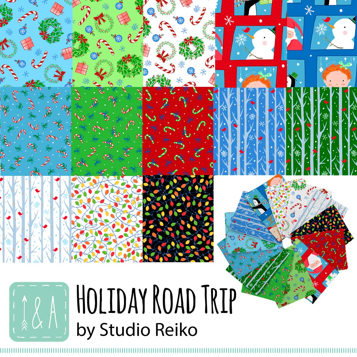 The gang’s all here with gifts and décor making spirits bright! These playful prints celebrate the warmth and whimsy of the season. String up the lights, grab a candy-cane and watch the snow fall as you head to your holiday party. Lots of creative opportunities for fun projects. An advent calendar panel is a great way to make memories with little ones! ©Studio Reiko