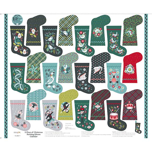 Contemporary Christmas is heading your way with this delightful collection of expressive designs starring all the characters of the 12 Days of Christmas. Lords-a-leaping, maids-a-milking, along with all-the-birds are represented in a beautiful color palette. Dark Turquoise, charcoal, aqua, joyful red, and gray with touches of lime green. With seven project panels, you have lots of chances for fast finishes to gift or keep for years to come! ©Julie Lynch