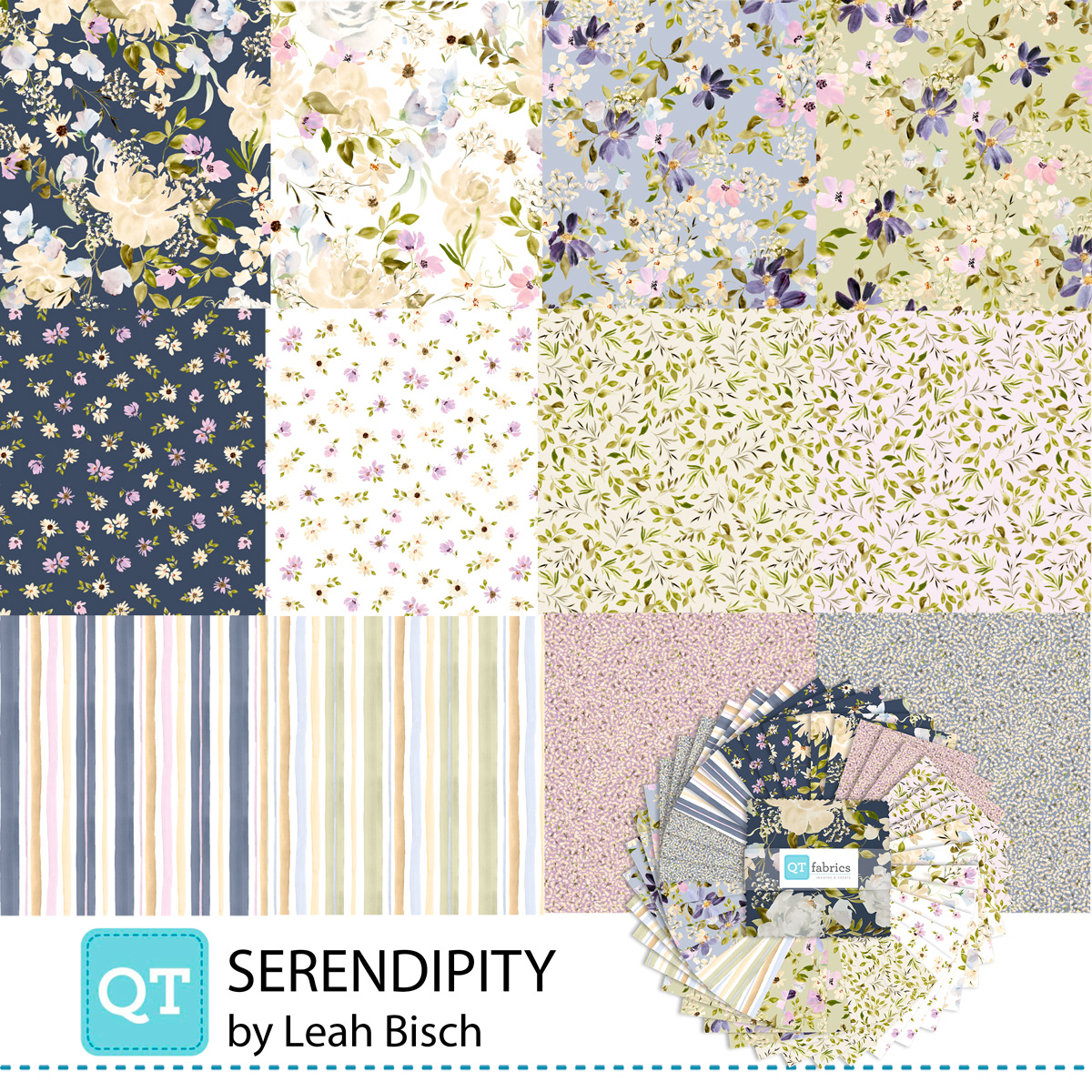 Contemporary elegance awaits your next project. This garden-inspired collection features gentle watercolor blushing blooms, dancing leaves and delicate sprigs in an ethereal palette. Subdued navy, periwinkle, ballet pink, soft sage, and crisp white are perfect for creating quilts, apparel, accessories, and more. ©Leah Bisch