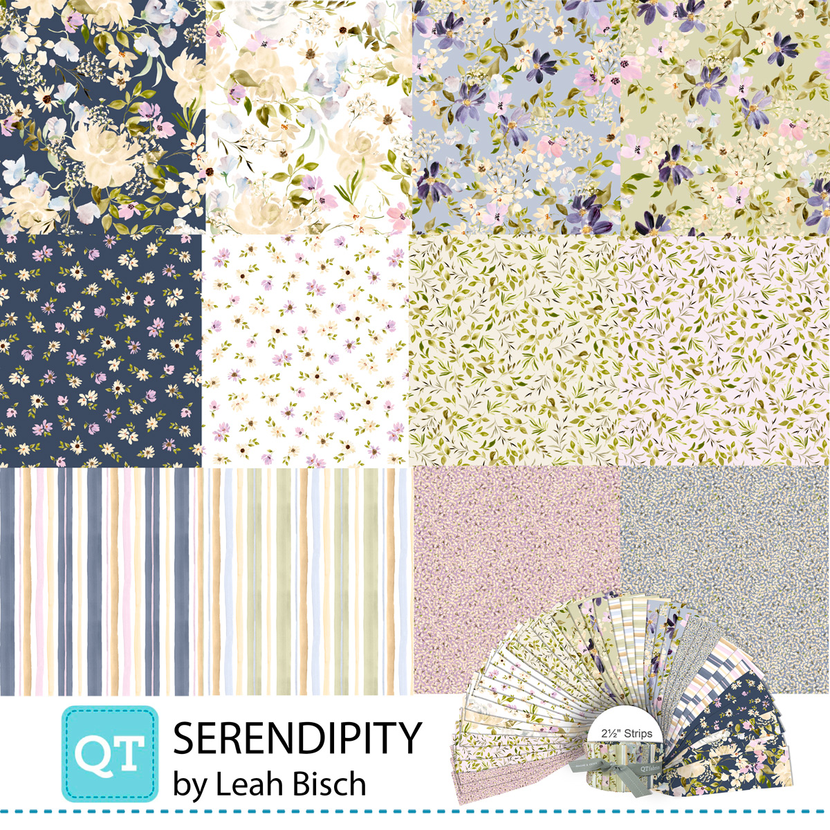 Contemporary elegance awaits your next project. This garden-inspired collection features gentle watercolor blushing blooms, dancing leaves and delicate sprigs in an ethereal palette. Subdued navy, periwinkle, ballet pink, soft sage, and crisp white are perfect for creating quilts, apparel, accessories, and more. ©Leah Bisch