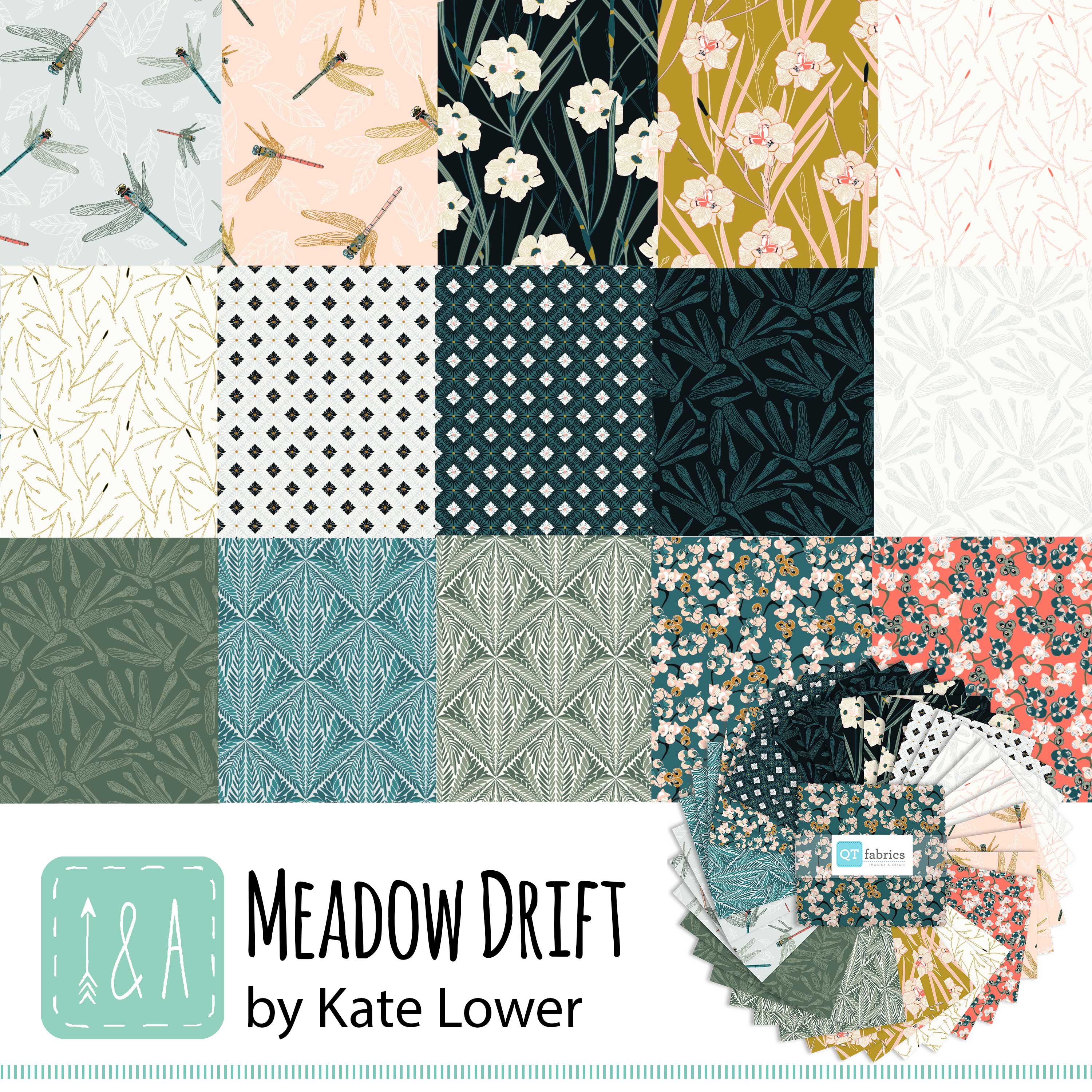 Vintage charm meets modern flair in this enchanting collection. Goldenrod, coral, hushed blue, and soft salmon mingle with deep navy, dusty aqua and chic gray. Dragonflies glide across the garden of prints offering endless possibilities for apparel, sewing and quilting creations that showcase your style.