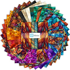 If you can dream it, you can create it! It’s all about textures and movement in vibrant color and clever design rendering a handcrafted collection that seems to simulate woven textiles with a subtle south-of-the border vibe. Mix and match intricate patterns, textures, and tonals in sunset oranges, electric blues, rich magentas, emerald greens, and rich reds with this artisanal, show stopping ensemble that will add drama to any project. Scale is fantastic for using in pieced projects.
